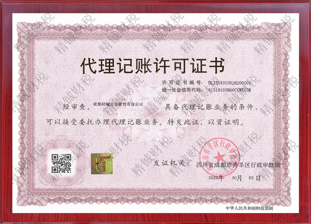 成都精铖财税咨询有限公司18年在成都成立;是经成都市工商局、财政局核准成立的专业企业登记代理的服务公司,公司依托自身完善的服务体系,强大的专业技术支持团队以及多年国内工商界的实际经验,对国内市场具有较为敏锐的观察力和判断力,并能很快把政府的各项政策法规转变为切实可行的实施方案,为用户提供较专业、较便捷、较全面的商务服务;确保客户享受到高质量的企业服务,为所有客户提供专业的一站式企业服务平台。