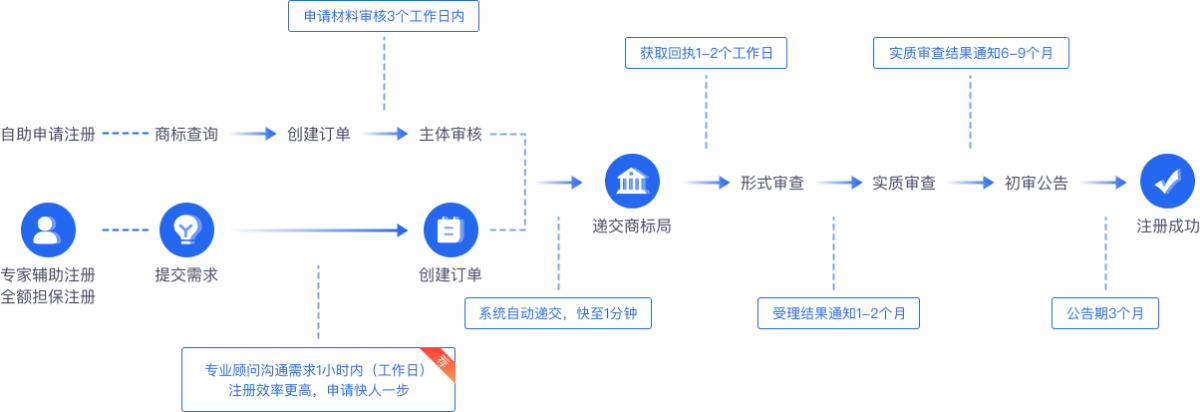 自助注册、专家辅助注册、至尊无忧注册等多种模式